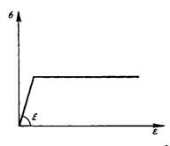 При работе конструкции в упругопластической области диаграмму работы стали Ơ - ε можно упростить в сторону некоторого запаса и заменить идеализированной диаграммой упругопластического тела, совершенно упругого до предела текучести и совершенно пластичного после него (диаграмма Прандтля, рис.1.5.).