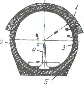 | Рис. 1.6.12. Сечение тоннеля для отвода реки от угольного месторождения: 1 - опорный свод; 2 - обделка; В лекции "12 Затратный подход к оценке недвижимости" также много полезной информации. 3 - рубашка; 4 - разделительная стенка; 5 - основание |