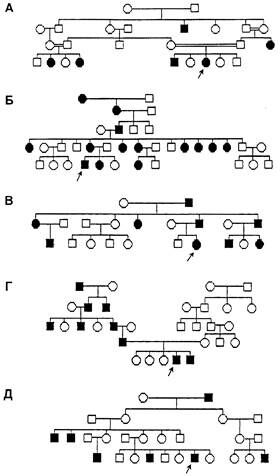 На рис. 4 представлены графические изображения нескольких родословных с разными типами ядерного наследования.