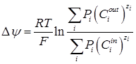 В дальнейшем, Ходжкин вывел формулу для потенциала, создаваемого несколькими ионами: