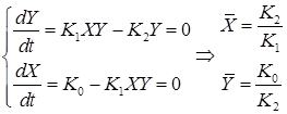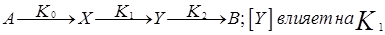 5. Химическая реакция с обратной связью. Построение простейшей математической модели. Определение координат особых точек, их типа и степени устойчивости.