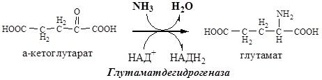 α-Кетоглутарат + НАДH2 + NH3 → глу + НАД+.
