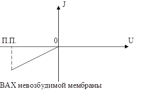 В качестве ответа на внешнее раздражение может быть изменение обмена веществ, температуры, низкого сопротивление тканей, а также специфические реакции связанные с распространением норного импульса возникновение потенциала действия является условие специфических реакций. Существенное различие между возбудимыми и не возбудимыми мембранами проявляется в их ВАХ-х. Для невозбудимых мембран ВАХ имеет линейный вид, т.е. при увеличении потенциала мембраны от потенциала покоя до 0, сила тока убывает до 0 т.е. проводимость мембраны в этом случае не изменяется.