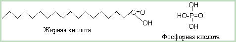 Рис. 4. Скелетные формулы одной из жирных кислот и фосфорной кислоты