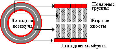 Липосомы - это липидные везикулы (пузырьки), образующиеся из фосфолипидов в водных растворах. Чтобы получить липосомы, спиртовый раствор фосфолипидов впрыскивают в большой объем водного раствора.Фосфолипиды, нерастворимые в воде, образуют мелкие пузырьки, стенки которых состоят из одного липидного бислоя (однослойные липосомы).