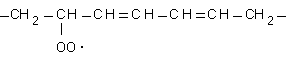 В кислород-содержащей среде происходит быстрое присоединение молекулы кислорода к одному из атомов углерода с неспаренным электроном, обычно к крайнему. Образуется радикал перекиси липида: