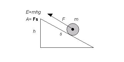 На рис.1. тело массой m движется вверх по наклонной плоскости под действием приложенной силы F. Если оно прошло путь s , то работа будет равна Fs. Эта работа, произведенная над системой, частично используется на увеличение потенциальной энергии системы, которая в данном случае равна mgh.
