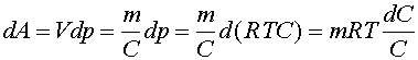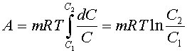 2. Сконцентрировать раствор до значений молярной концентрации C. На это надо произвести, как показывает уравнение 7, работу: