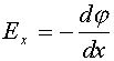 Напряженность поля связана с градиентом потенциала в направлении поля (ось X) уравнением: