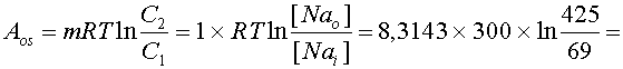 Решение: Работа складывается из осмотической и электрической составляющих. Осмотическую работу расчитываем по уравнению 6: