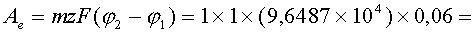 Электрическую работу при переносе одного киломоля ионов находим по уравнению 12: