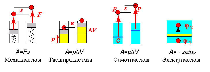 На рис. 5 схематически изображены различные виды работы, которая может быть осуществлена в биологической системе.