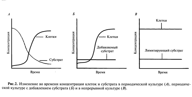 1.периодическое культивирование с подпиткой, при котором, помимо первичного внесения питательного субстрата до засева культуры, в процессе культивирования в аппарат через определенные интервалы добавляют небольшие объемы питательных веществ либо порциями, либо непрерывно «по каплям».