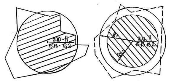 Из геометрического центра города радиусом Rг очерчивается окружность. Далее определяется радиус поражения с Рф = 0,3 кгс/см2 и вычерчивается площадь поражения города с данными населения.