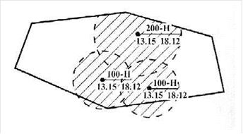 1. На план наносят зоны, где давление составляет 30 кПа (0,3 кгс/см2) в очаге поражения каждого взрыва.