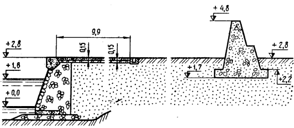 Рис. 4.13. Берегозащитные стены с использованием каменной призмы