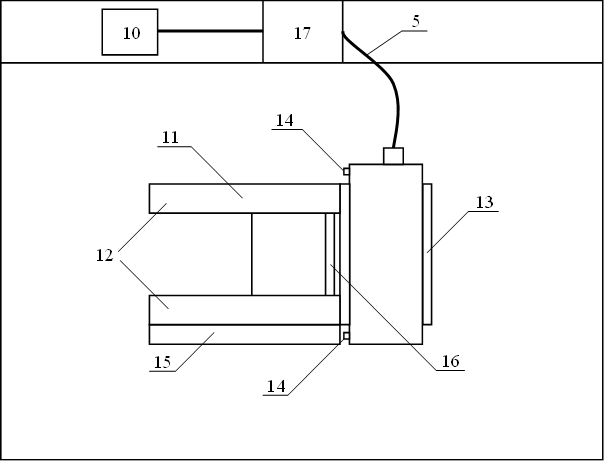 - установить футляр с источником излучения (11) в направляющие (12), при работе с b–излучением аккуратно открыть источник излучения;