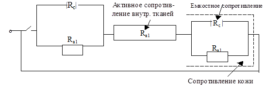 3. Простейшая схема электрического сопротивления человека.