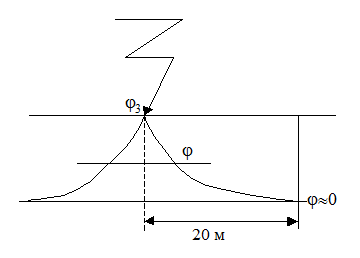 Потенциал токоведущей части падает до потенциала j3, где j3 = J3 · r3,