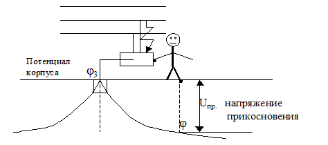 2). Напряжение шага - разность потенциалов между точками цепи тока, находящихся на расстоянии 0,8 м.