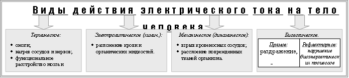 Характер действия электрического тока на человека.
