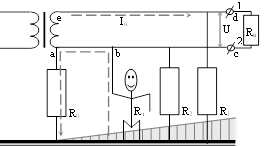 Падения напряжения в сети должны быть не более 5% на каждый провод. Допустим, что напряжения на проводах 1 и 2 равны (Uс = 220 В, Ud = 220 В – 0,05Uс, Ua = 0). Если человек коснется второго провода в точке С, то он попадет под напряжение, равное 5% от Uc.