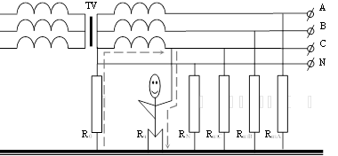 R0 — рабочее заземление электрической сети (не большее 40 Ом).