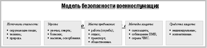 Условия безопасности — те обстоятельства, при которых любой вид деятельности (включая военную службу) становится безопасным. Первое условие обеспечения безопасности — изменение самого человека (формирование личности безопасного типа).