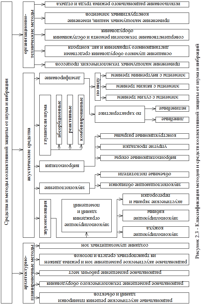 Для защиты от шума и вибраций применяются различные средства и методы личной и коллективной защиты. Классификация методов и средств коллективной защиты показаны на рисунке 2.3.