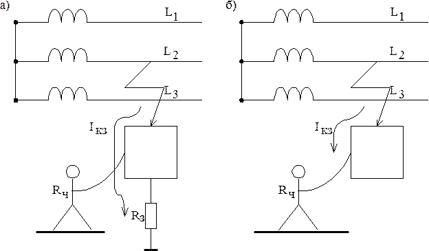 на корпус, оказывается включенным параллельно заземлителю с сопротивлением защитного