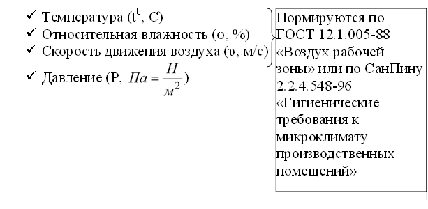 · параметры микроклимата должны соответствовать нормативным требованиям
