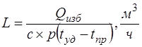 где Qизб – избытки явной теплоты выделяющиеся в единицу времени, c, p – теплоемкость и плотность наружного воздуха соответственно, tуд – температура удаляемого воздуха