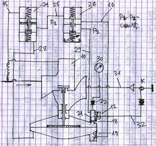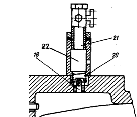 В РДБК-1 имеется три дросселя. Первый дроссель (19) установлен при подаче газа из пилота в подмембранную полость мембранной камеры исполнительного узла. Второй дроссель (18) установлен между импульсной колонкой (22) и верхней чугунной тарелкой мембранной камеры исполнительного узла. Третий дроссель (17) установлен на сбросной трубке.
