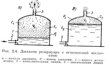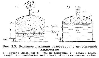 Малым дыханием называют вытеснение паров наружу или подсос воздуха внутрь аппаратов, вызываемые изменениями температуры газового пространства под влиянием изменения температуры внешней среды.