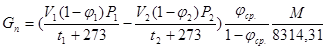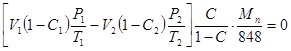 объем газового пространства за определенный период изменился от V1 до V2, температура и давление в газовом пространстве от t1 и Р1 до t2 и Р2, объемная концентрация паров жидкости от С1 до С2.