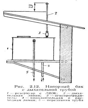Наружные емкости и резервуары должны быть оборудованы непримерзающими дыхательными клапанами (рис. 2.9). На дыхательной линии между резервуаром с ЛВЖ и клапаном устанавливают огнепреградитель.