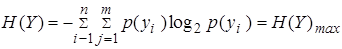 Энтропия Н(Y) является мерой первоначальной неопределенности состояния объекта управления. Чем больше число различных состояний объекта и чем меньше отличаются друг от друга их вероятности, тем больше энтропия объекта управления. При n равновероятных состояниях рi = 1/n значение энтропии максимально: Н(Y)max = log2n.