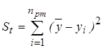Величина St рассматривает разброс вокруг постоянной линии (среднее) в отличие от разброса вокруг модели регрессии. Это - неопределенность зависимой переменной от регрессии. Мы также определяем отклонение от сглаживающей кривой как