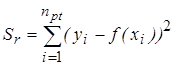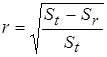 Это выражение по форме напоминает формулу для стандартной ошибки, приведенной выше; Оно дает нам разброс точек вокруг подобранной функции. Таким образом, уменьшение погрешности может быть определено количественно как разность этих двух чисел. Поскольку эта величина зависит от масштаба данных, разность отнесена к значению St (нормирована).