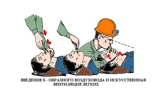Приемы восстановления проходимости дыхательных путей необходимо использовать даже в тех случаях, когда нет возможности уложить пострадавшего на спину, например, в тесной выработке, в завале.