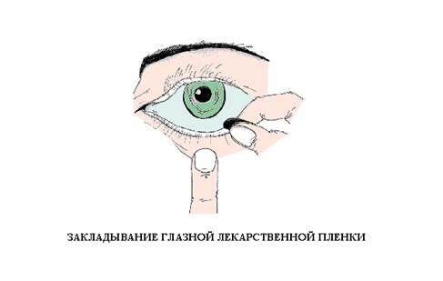 При ожогах, офтальмиях, ослеплениях повязку не накладывают. Чтобы устранить нередко появляющуюся светобоязнь, хотя бы на время, в конъюктивальный мешок глаза, оттянув нижнее веко, закладывают глазную лекарственную пленку из индивидуальной аптечки (Рис. 38). Пленка содержит длительно действующее обезболивающее вещество, кроме того, в нее включен антибиотик и в ряде случаев - антидот против ФОВ.