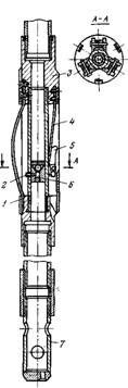 1 – центрирующая пружина; 2 – установочный винт; 3 – корпус; 4 – консольная пружина; 5 – защелки; 6 – поршень; 7 – ловушки