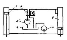 В приводе с закрытой гидросхемой бак с рабочей жидкостью находится под давлением, соизмеримым с рабочим давлением насоса.