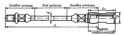 Колонна насосных штанг представляет собой стержень, состоящий из отдельных штанг, соединенных резьбовыми соединениями. Колонна НШ передает механическую энергию от привода к скважинному насосу.