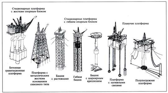 Рис. 22 Современные глубоководные платформы, используемые для разработки шельфовых нефтегазовых месторождений