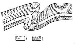1 — коллектор (песок); 2 — плохо проницаемые породы