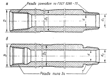 УБТ этих типов имеют аналогичную беззамковую (отсутствуют отдельные присоединительные концы) толстостенную конструкцию Горячекатанные УБТ выполняются гладкими по всей длине. На верхнем конце УБТС выполняется конусная проточка для лучшего захвата клиньями при спуско-подъемных работах.