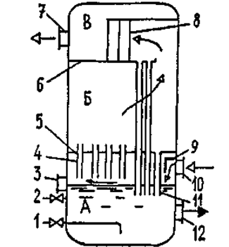 · промывочной А (от нижнего днища до перегородки 5), в которой все время поддерживается постоянный уровень масла;