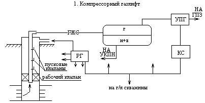 В тех случаях, когда фонтанные режимы не обеспечивают требуемы дебитов, можно дополнительно подавать газ в скважину и увеличить за счет работы газа дебит жидкости. Такой способ эксплуатации называют газлифтом.