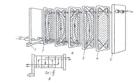 Рисунок 2 – Схемы пластинчатых теплообменников (а – разборного, б – сварного)